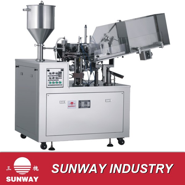 灌裝封尾機是一種機械裝置,能夠平穩、準確地將各種糊狀、糊狀、粘性流體和其他物質注入軟管,灌裝封尾機完...